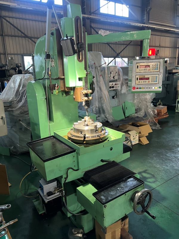 Max stroke 230、table dia 430、front swivel angle of ram 10°、Gear ratio 1:90、Ram speed (spm)22、36、56、91、Vertical ram travel 320、Distanco between end of ram work table 450、Y axis 510、X 440、Feed rate of work table 0~2、Main drive motor 3HP、Feeding and dividing motor(soeppiing motor)81KG/CM、Net weight 2000KG