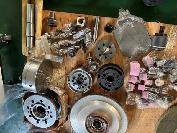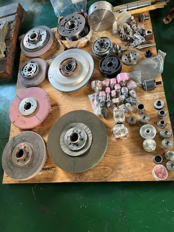 兩頂心間最大距離1000、工作台最大旋徑350φ、最大工件重量120KG~150KG、最大移動量1050、工作台旋回角8.5°、砂輪頭前後移動量275mm、砂輪頭旋回範圍0~90°、(可內徑或外徑研削)、砂輪尺寸:右邊406×127×80t、左邊:406×127×40t、主馬力10HP、工件主軸迴轉數1670/2110rpm、靜壓軸承迴轉數30~750rpm、主軸錐度:MT5、出力1HP、尾座主軸錐度MT3、移動量35mm、總電力量30KVA、控制系統:FANUC 16GC、機械重量:5.1TON